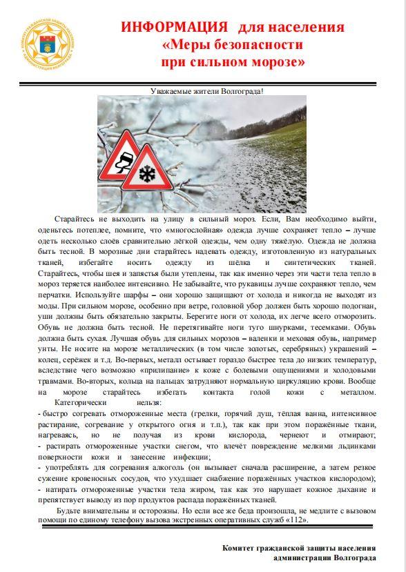 ПАМЯТКИ! Безопасность населения в зимний период.