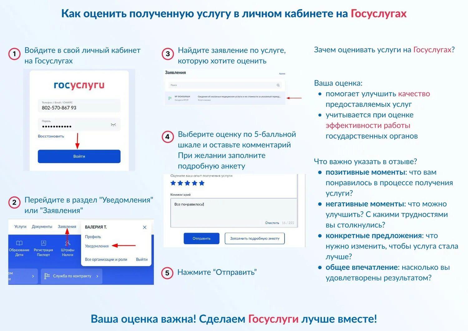 Приложение: памятка «Как оценить полученную услугу в личном кабинете на Госуслугах».